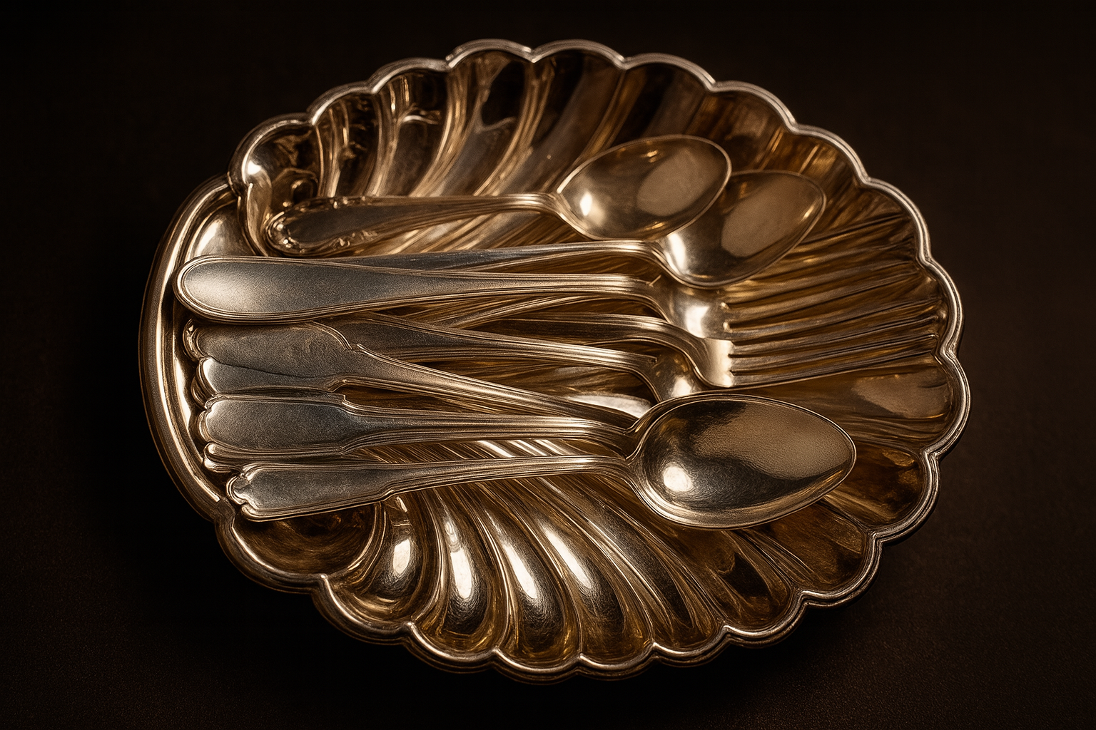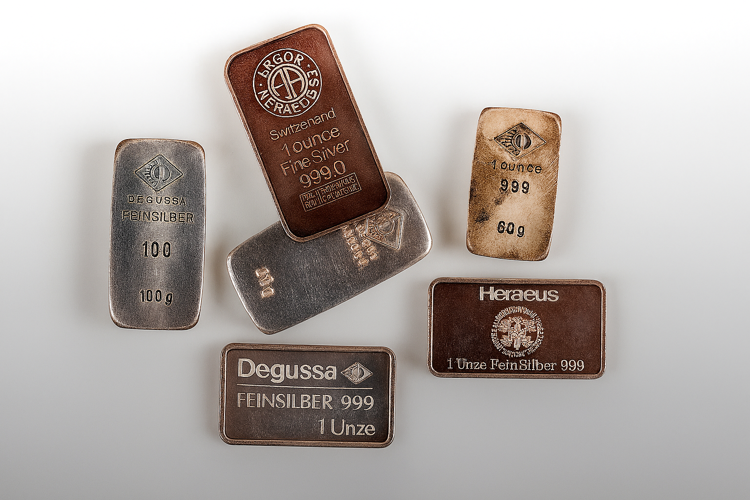 Wir kaufen Silber in jeglicher Form – ob als Besteck und Tafelsilber, Schmuck, Uhren, Münzen und Medaillen, Silberbarren, Silbergranulat oder Silberdraht.