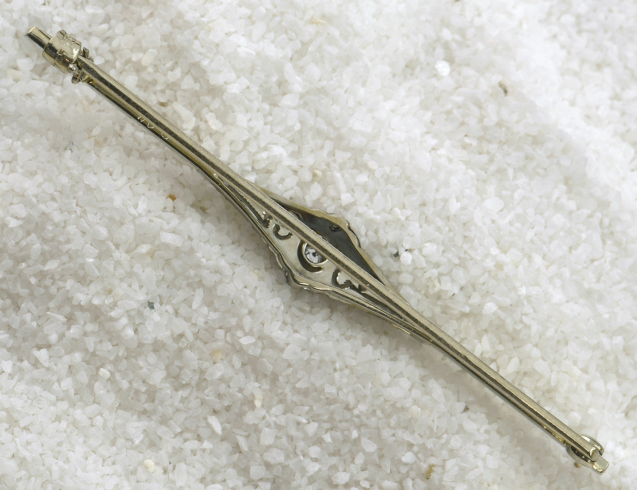 Antike Brosche 585/000 14 K Weißgold mit 5 Diamanten zus. 0,04 ct