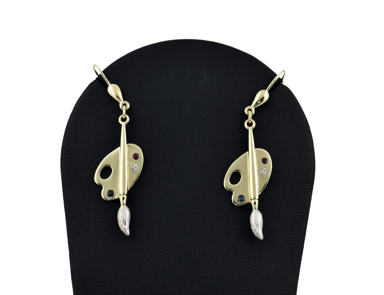 Ohrringe Farbpalette mit Pinsel Saphir Rubin Zirkonia 333/000 8 K Gelbgold